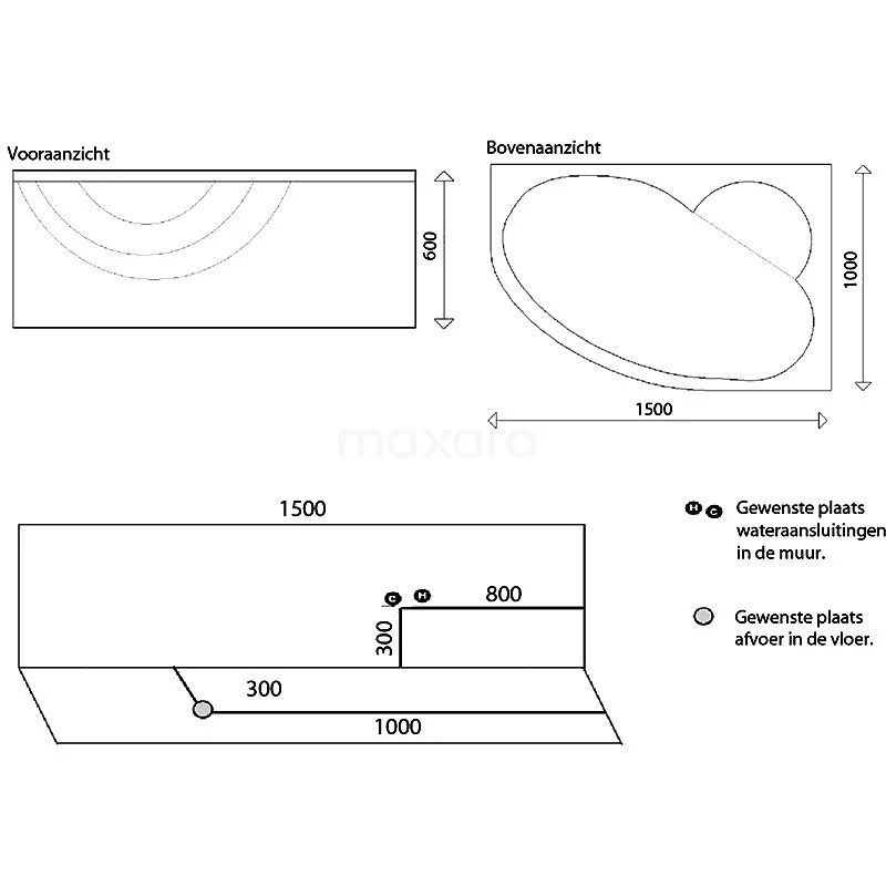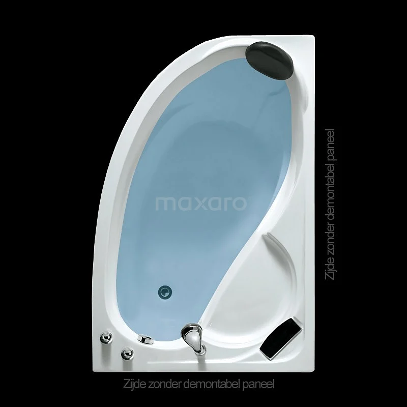 Het bad straalt luxe en ontspanning uit. Dit rechthoekige bad met afgeronde hoek is 150 cm lang en 100 cm breed. Hierdoor ligt u zeer aangenaam in het bad. Door het maximale waterniveau van 33 cm dompelt u zich heerlijk onder in het warme water. Daarbovenop is het bad uitgerust met geïntegreerde armsteunen voor extra comfort en grip.