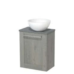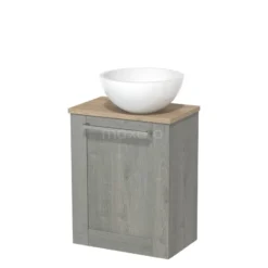 Toiletmeubel Met Waskom Mineraalmarmer Modulo Grijs Eiken Kader 41 Cm Middengrijs Blad