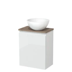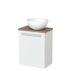 Toiletmeubel Met Waskom Mineraalmarmer Modulo Hoogglans Wit Greeploos 41 Cm Middenbruin Eiken Blad