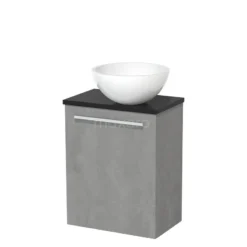Toiletmeubel Met Waskom Mineraalmarmer Modulo Lichtgrijs Beton Vlak 41 Cm Mat Zwart Blad