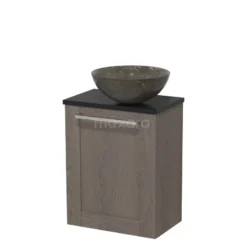 Toiletmeubel Met Waskom Natuursteen Modulo Donkerbruin Eiken Kader 41 Cm Mat Zwart Blad