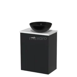 Toiletmeubel Met Waskom Mineraalmarmer Glanzend Modulo Hoogglans Wit 41 Cm Wandbeugels Zwart