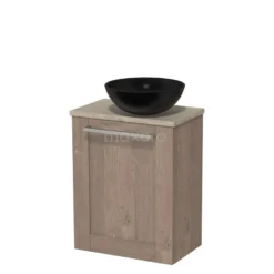 Toiletmeubel Met Waskom Keramiek Modulo Middengrijs Vlak 41 Cm Lichtbruin Eiken Blad