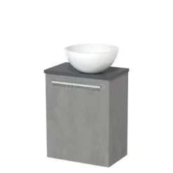 Toiletmeubel Met Waskom Mineraalmarmer Modulo Lichtgrijs Beton Vlak 41 Cm Donkergrijs Blad