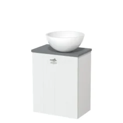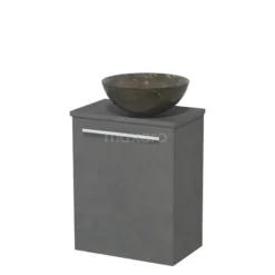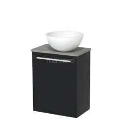 Toiletmeubel Met Waskom Mineraalmarmer Modulo Mat Zwart Greeploos 41 Cm Middengrijs Blad