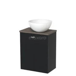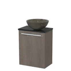 Toiletmeubel Met Waskom Natuursteen Modulo Donkerbruin Eiken Vlak 41 Cm Mat Zwart Blad