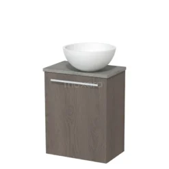 Toiletmeubel Met Waskom Solid Surface Modulo Donkerbruin Eiken Vlak 41 Cm Grijs Eiken Blad
