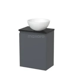 Toiletmeubel Met Waskom Solid Surface Modulo Donkergrijs Greeploos 41 Cm Mat Zwart Blad