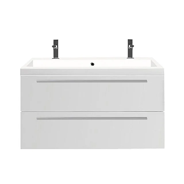 Dankzij het stijlvolle design is dit prachtige badkamermeubel de eyecatcher van uw badkamer. De hoogglans witte onderkast heeft een frisse uitstraling en vormt de perfecte basis voor ieder interieur. De tijdloze L-vormige handgrepen van aluminium hebben een matte afwerking en maken het plaatje af.