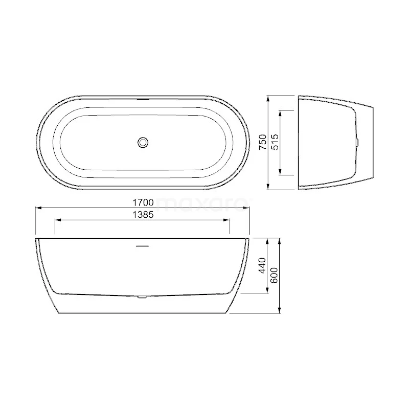 Het vrijstaande Cedrino-bad van 170×75 cm geeft uw badkamer een luxueuze touch. Dit glanzende pronkstuk heeft een ovale vormgeving met strakke randen. De minimalistische overloop past hier uitstekend bij. Het bad beschikt over een bodemmaat van 138,5×51,5 cm en is ideaal om alleen of met 2 personen heerlijk te badderen.