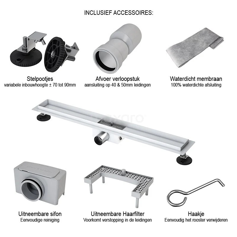 U ervaart ultiem onderhoudsgemak met dit model. Deze douchegoot beschikt onder andere over een haarfilter. Hierdoor zijn verstoppingen van uw leidingen voorgoed verleden tijd. Daarbij zorgt de flensrand en het waterdicht membraan voor een 100% waterdichte afsluiting. Tevens is de goot voorzien van een uitneembare sifon. Schoonmaken kost u op deze manier maar weinig tijd en moeite.