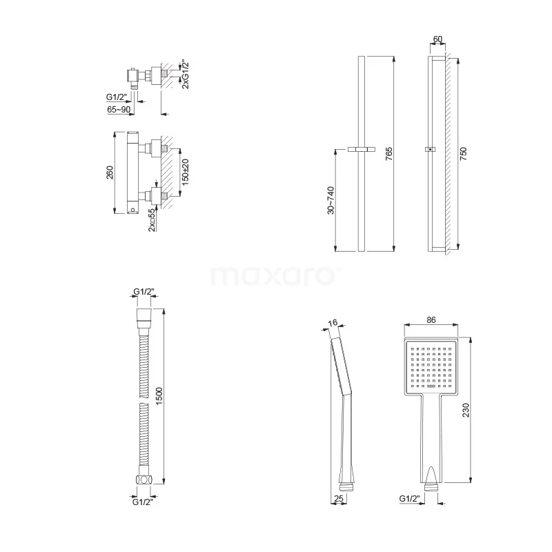 De doucheset is ideaal om te combineren met een douche van Maxaro. Onze inloopdouches en douchecabines zijn verkrijgbaar in verschillende afmetingen, uitvoeringen en kleuren. Voor iedere stijl is er een geschikte douche te vinden.
