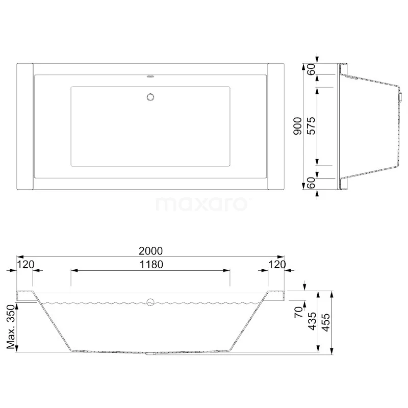 Het glanzende Elba-ligbad van 200×90 cm met rechthoekige vormgeving en strakke randen past uitstekend in een moderne stijl. Dit exemplaar heeft een ruime bodemmaat van 118×57,5 cm en is ideaal om met 2 personen heerlijk te badderen. U plaatst het inbouwbad tegen de muur en werkt dit af met een ombouw. Deze betegelt u geheel naar wens. Zo sluit het bad perfect aan op uw badkamer