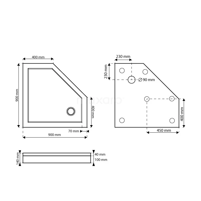 Deze hoge douchebak vangt tijdens het douchen al het water op en mag absoluut niet ontbreken in uw badkamer. Dit vijfhoekige model heeft afmetingen van 90×90 cm. De douchebak is uitgevoerd in hoogglans wit en voorzien van een tijdloze uitstraling. Bovendien geeft deze kleur uw badkamerinterieur een frisse touch.