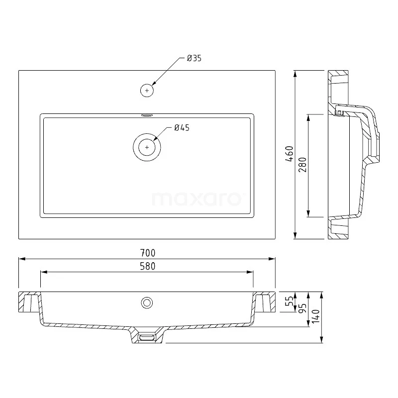 De Meza-wastafel is uitgevoerd in hoogglans wit en komt in elke badkamer tot zijn recht. Dit exemplaar kenmerkt zich door strakke, rechte lijnen. De wastafel is gemaakt van mineraalmarmer, waarover een gelcoating is aangebracht voor een mooie glans. Het materiaal is zeer onderhoudsvriendelijk. Krassen en vuil poetst u namelijk eenvoudig weg.