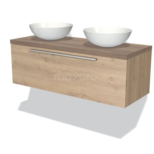 Dankzij het prachtige design is dit badkamermeubel de eyecatcher van uw badkamer. De lichtbruin eiken onderkast heeft een warme uitstraling en is voorzien van een wastafelblad in middenbruin eiken. Daarnaast beschikt het meubel over een vlak front voor een tijdloze touch. De handgreep dient u zelf toe te voegen. Deze is verkrijgbaar in verschillende kleuren en vormen.