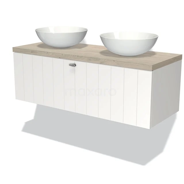 Dankzij het prachtige design is dit badkamermeubel de eyecatcher van uw badkamer. De mat witte onderkast heeft een moderne uitstraling en is voorzien van een wastafelblad in lichtgrijs eiken. Daarnaast beschikt het meubel over een lamelfront voor een landelijke touch. De handgreep dient u zelf toe te voegen. Deze is verkrijgbaar in verschillende kleuren en vormen.