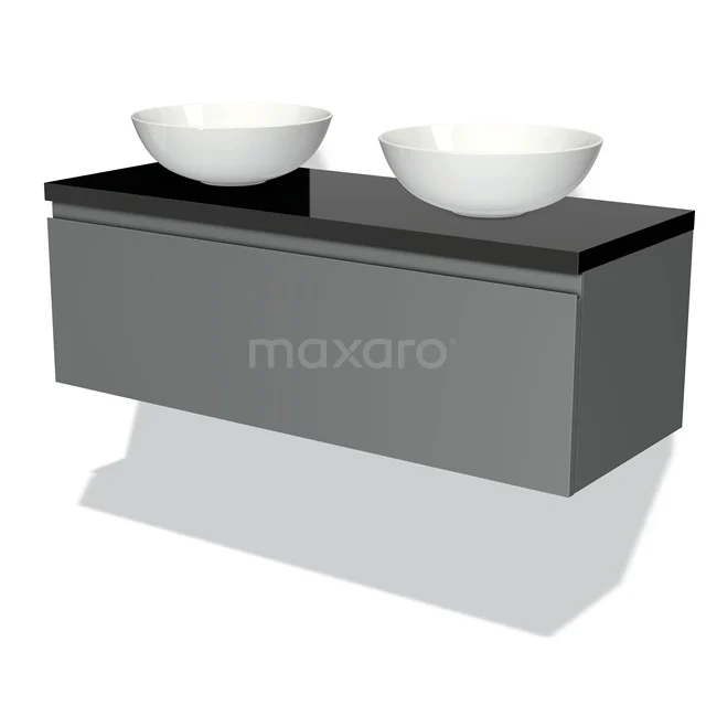 Dankzij het prachtige design is dit badkamermeubel de eyecatcher van uw badkamer. De middengrijze onderkast heeft een moderne uitstraling en is voorzien van een wastafelblad in hoogglans zwart. Daarnaast beschikt het meubel over een greeploos front voor een strakke touch.