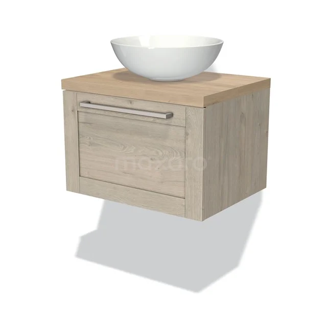 Dankzij het prachtige design is dit badkamermeubel de eyecatcher van uw badkamer. De lichtgrijs eiken onderkast heeft een sfeervolle uitstraling en is voorzien van een wastafelblad in lichtbruin eiken. Daarnaast beschikt het meubel over een kaderfront voor een klassieke touch. De handgreep dient u zelf toe te voegen. Deze is verkrijgbaar in verschillende kleuren en vormen.