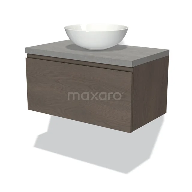 Dankzij het prachtige design is dit badkamermeubel de eyecatcher van uw badkamer. De donkerbruin eiken onderkast heeft een warme uitstraling en is voorzien van een wastafelblad in lichtgrijs beton. Daarnaast beschikt het meubel over een vlak front voor een tijdloze touch. De handgreep dient u zelf toe te voegen. Deze is verkrijgbaar in verschillende kleuren en vormen.