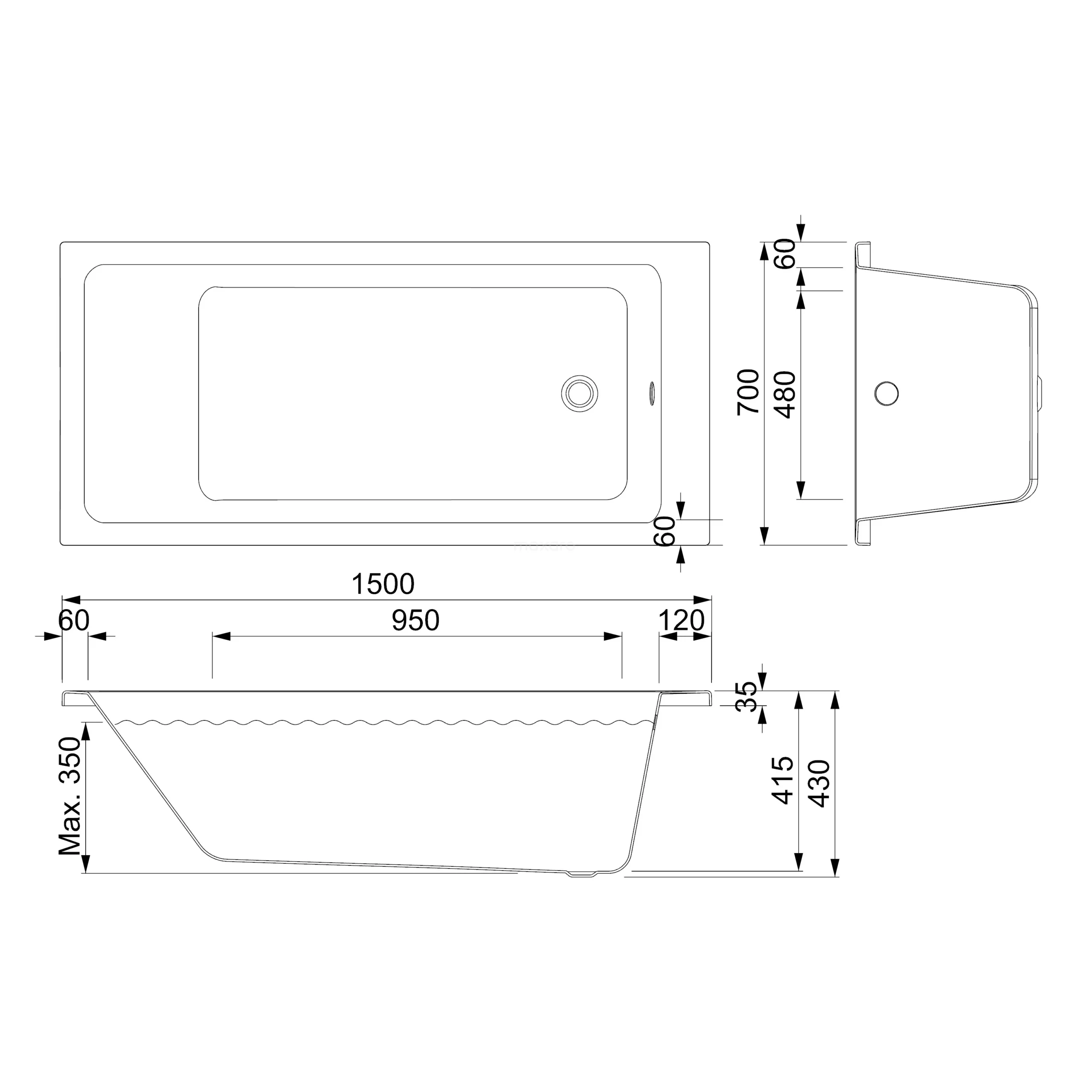 Het glanzende Piana-ligbad van 150×70 cm met rechthoekige vormgeving en afgeronde randen past uitstekend in een moderne stijl. Door de ligzijde en rechte kant is het bad geschikt om te badderen én douchen. Dit exemplaar heeft een bodemmaat van 95×48 cm en is ideaal voor een heerlijk moment voor uzelf. U plaatst het inbouwbad tegen de muur en werkt dit af met een ombouw. Deze betegelt u geheel naar wens. Zo sluit het bad perfect aan op uw badkamer.