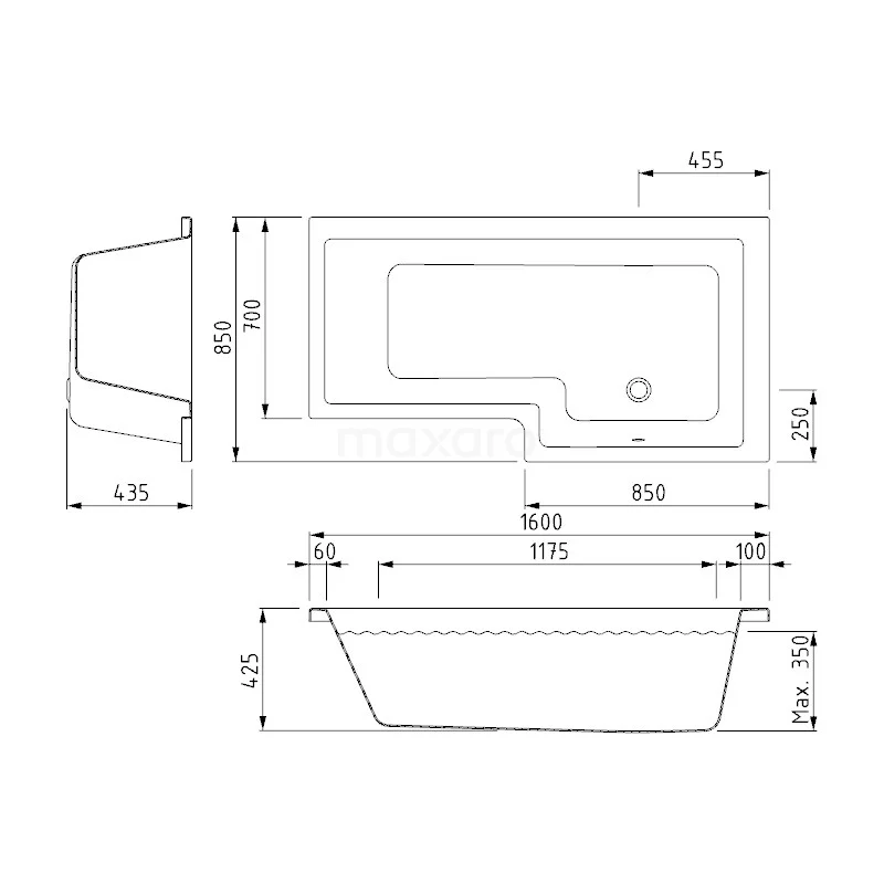 Het glanzende Pianosa-hoekbad van 160×85 cm met zeshoekige vormgeving is dankzij de ligzijde en het brede douchegedeelte ideaal om te badderen én douchen. Dit exemplaar heeft een bodemmaat van 117,5,8×47,2 cm en biedt plaats voor 2 personen. Het bad is geschikt om in een rechterhoek te monteren en ook verkrijgbaar in een linkeruitvoering.