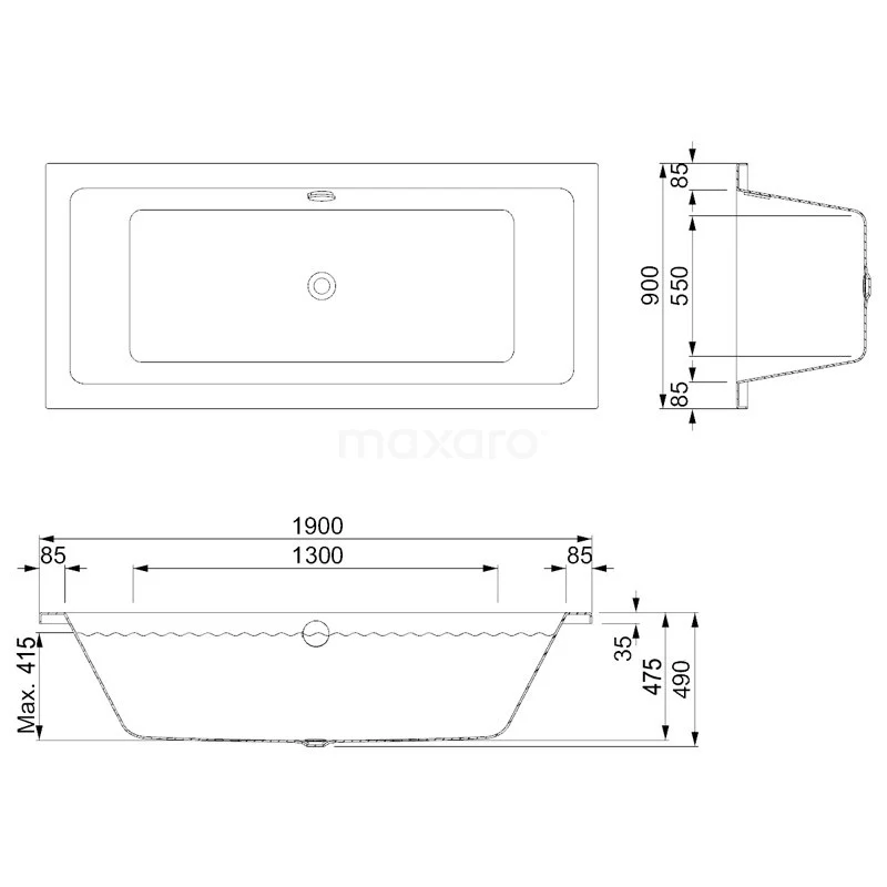 Het glanzende Ponza-ligbad van 190×90 cm met rechthoekige vormgeving en afgeronde randen past in elke badkamerstijl. Dit exemplaar heeft een bodemmaat van 130×55 cm en is ideaal om met 2 personen heerlijk te badderen. Door de diepte van 49 cm dompelt u zich helemaal onder in het warme water. U plaatst het inbouwbad tegen de muur en werkt dit af met een ombouw. Deze betegelt u geheel naar wens. Zo sluit het bad perfect aan op uw badkamer.