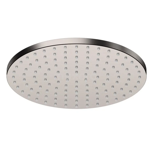 De regendouchekop is meermaals handmatig en machinaal gepolijst en heeft een zeer glad oppervlak. Na het polijsten wordt deze eerst vernikkeld en verchroomd, waardoor de afwerklaag extra sterk is. Vervolgens wordt de douchekop geborsteld en voorzien van een rvs-kleur door de toepassing van PVD. Dankzij het hoge afwerkingsniveau heeft de regendouche een luxe uitstraling.