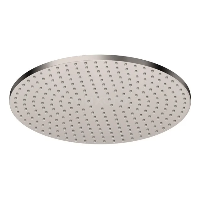 De regendouchekop is meermaals handmatig en machinaal gepolijst en heeft een zeer glad oppervlak. Na het polijsten wordt deze eerst vernikkeld en verchroomd, waardoor de afwerklaag extra sterk is. Vervolgens wordt de douchekop geborsteld en voorzien van een rvs-kleur door de toepassing van PVD. Dankzij het hoge afwerkingsniveau heeft de regendouche een luxe uitstraling.