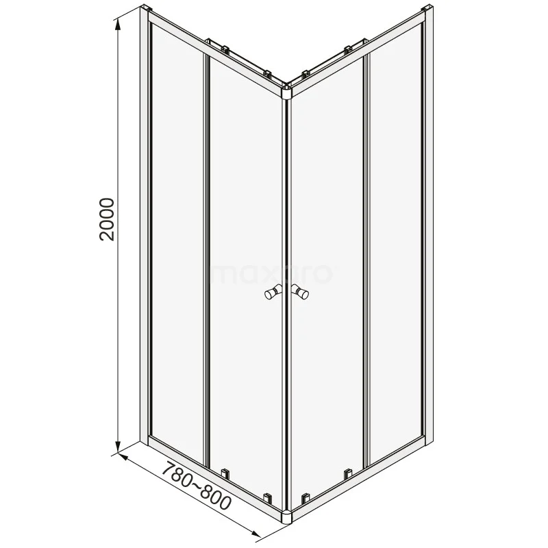 - Deur zijde van 80 cm, verstelbaar van 780 – 800 mm