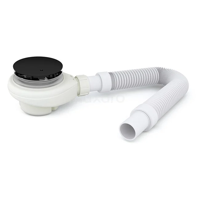 Deze sifon met zwarte afvoercover en afvoerslang is geschikt voor alle hoge douchebakken en stoomcabines van Maxaro met een afvoerdoorsnede van 90 mm. Dit exemplaar heeft een hoogte van 80 mm en een afvoercapaciteit van 35 liter per minuut. Daarnaast is de sifon voorzien van een stankafsluiter, waardoor u geen last heeft van nare geuren. Om de mooie uitstraling langdurig te behouden, raden wij aan om de sifoncover regelmatig af te nemen met een zachte, vochtige doek.