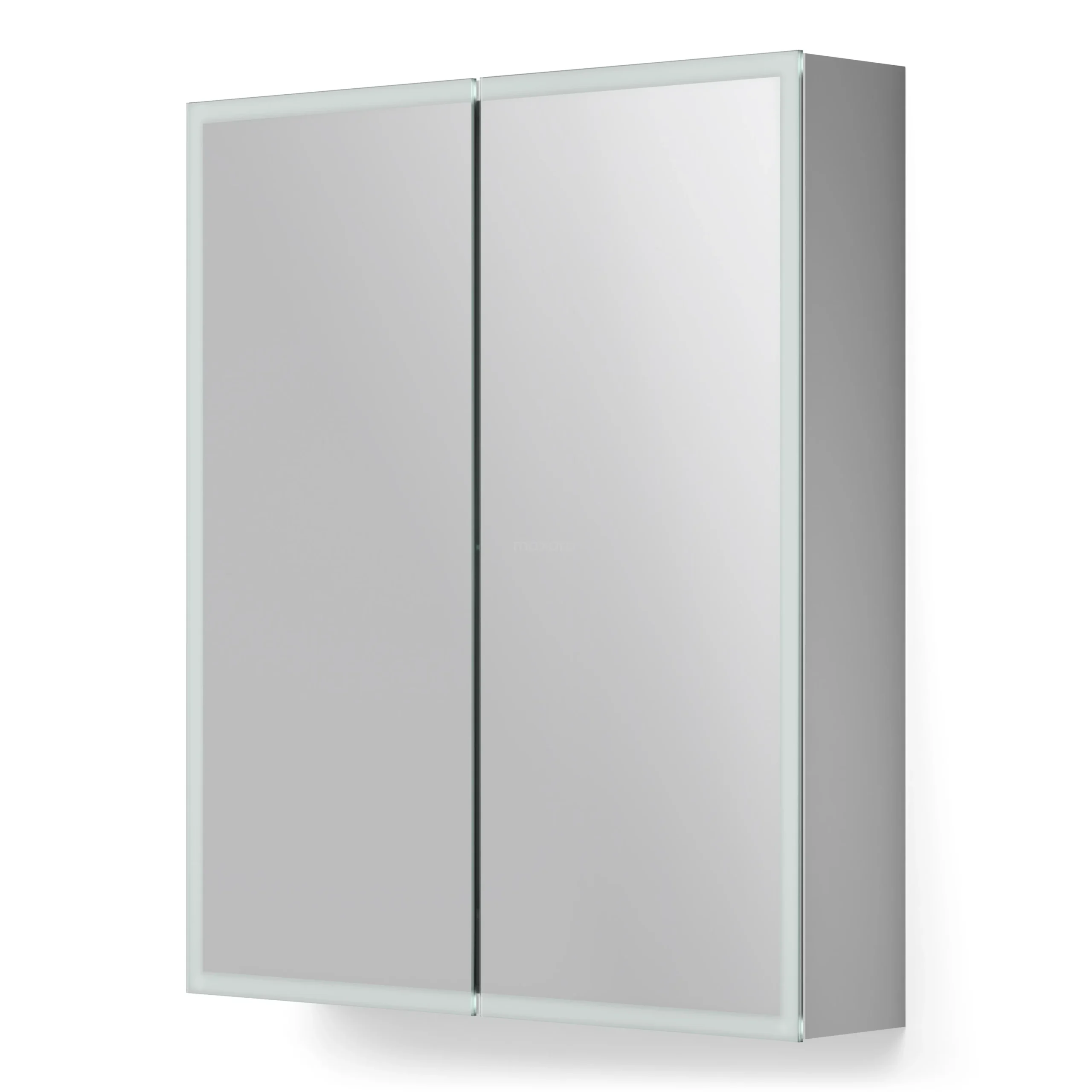 Dit prachtige exemplaar is uitgevoerd in aluminium en heeft een rechthoekig design. De strakke afwerking voorziet de spiegelkast van een minimalistische touch. Hierdoor komt de kast uitstekend tot zijn recht in een moderne stijl. De verlichting rondom de spiegel geeft het geheel een sfeervolle uitstraling. Bovendien zorgt de spiegel voor een ruimtelijk effect in uw badkamer.