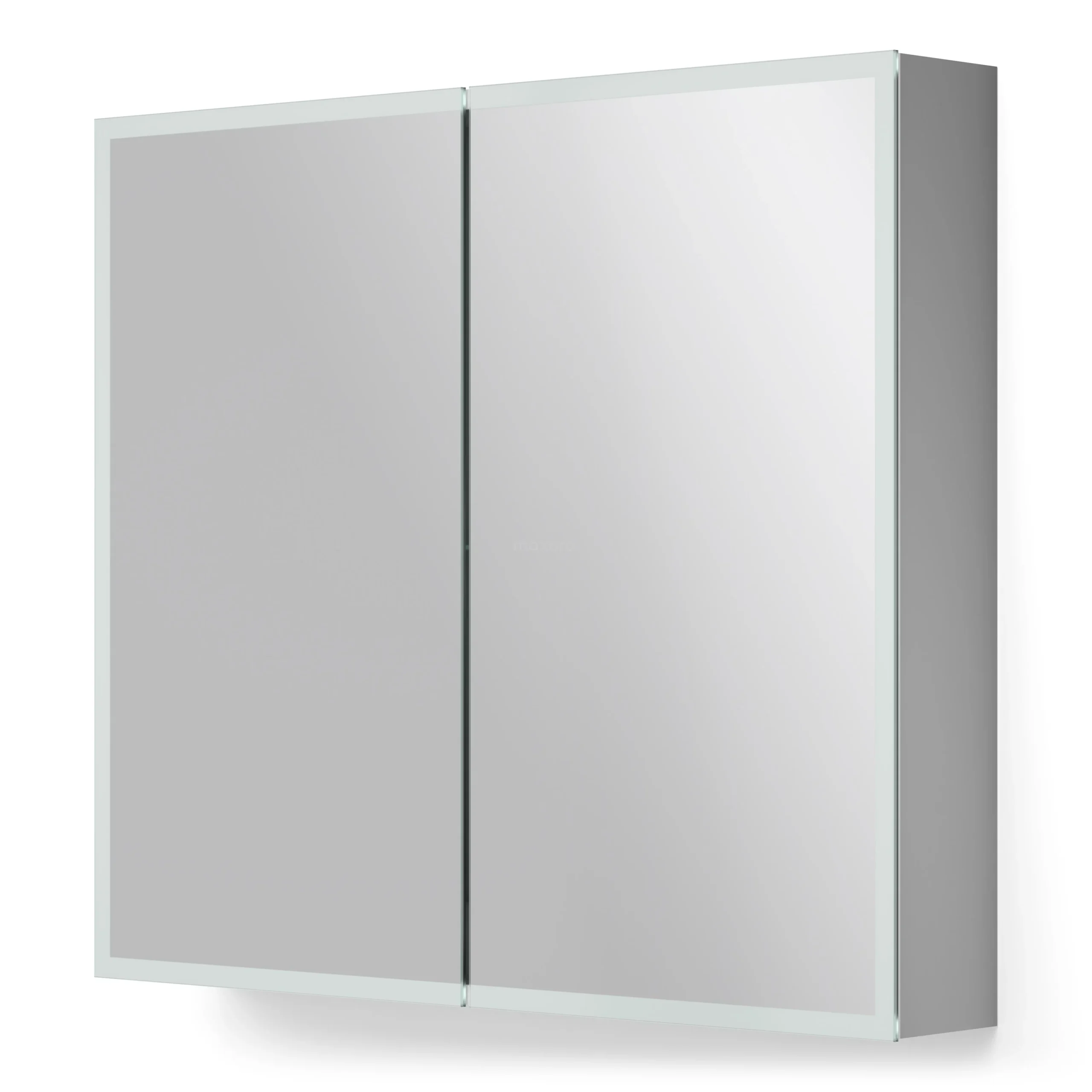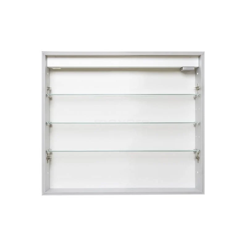 Dit prachtige exemplaar is uitgevoerd in aluminium en heeft een rechthoekig design. De strakke afwerking voorziet de spiegelkast van een minimalistische touch. Hierdoor komt de kast uitstekend tot zijn recht in een moderne stijl. De verlichting rondom de spiegel geeft het geheel een sfeervolle uitstraling. Bovendien zorgt de spiegel voor een ruimtelijk effect in uw badkamer.