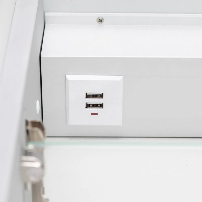 De spiegelkast beschikt over een aantal handige functionaliteiten. Dit model heeft een stopcontact en 2 USB-aansluitingen om uw elektrische apparaten te gebruiken of op te laden. Verder zijn er binnenspiegels aanwezig, zodat u zichzelf ook bewondert als de deuren van de kast openstaan. Middels de infraroodschakelaar bepaalt u de kleurtemperatuur van de verlichting. Op deze manier creëert u altijd de juiste sfeer in uw badkamer.