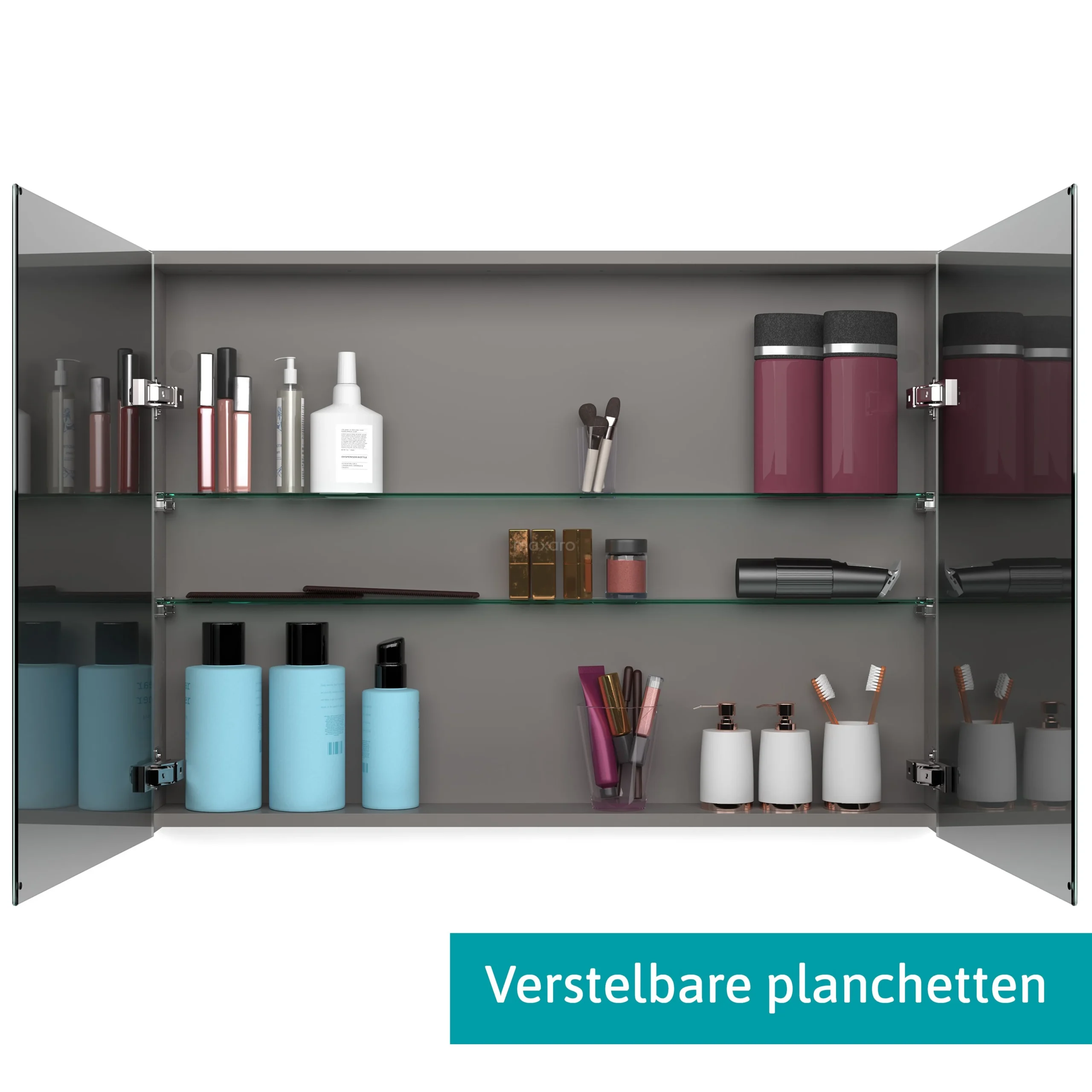 De installatie van deze spiegelkast is bijzonder makkelijk. Met behulp van het verstelbare systeem hangt u de kast in een mum van tijd waterpas. De planchetten binnenin zijn eenvoudig te monteren en verstelbaar naar wens. Door de verstelbaarheid bent u vrij om te kiezen hoe u de spiegelkast wilt indelen.