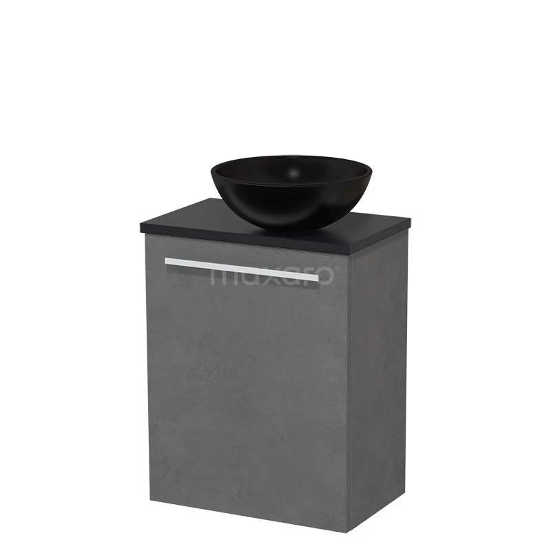 Dankzij het prachtige design is het meubel een blikvanger in de toiletruimte. De onderkast heeft een donkergrijze betonnen afwerking met een mat zwart wastafelblad.