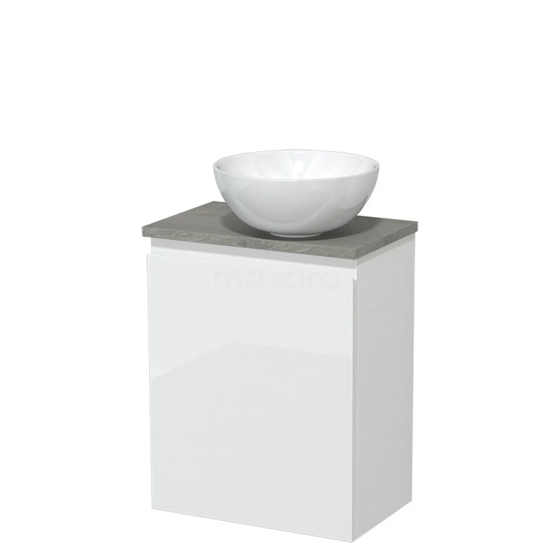 Dankzij het prachtige design is het meubel een blikvanger in de toiletruimte. De onderkast heeft een hoogglans witte afwerking met een grijs eiken wastafelblad.