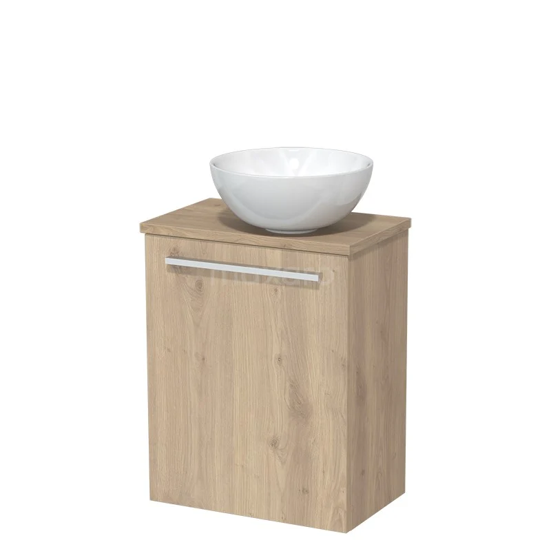 Dankzij het prachtige design is het meubel een blikvanger in de toiletruimte. De onderkast heeft een lichtbruin eiken afwerking. Deze prachtige eikenlook creëert een warme sfeer in de ruimte. Verder is het meubel uitgerust met een vlak front voor een tijdloze touch. De handgreep dient u zelf toe te voegen. Deze is verkrijgbaar in verschillende kleuren en vormen.