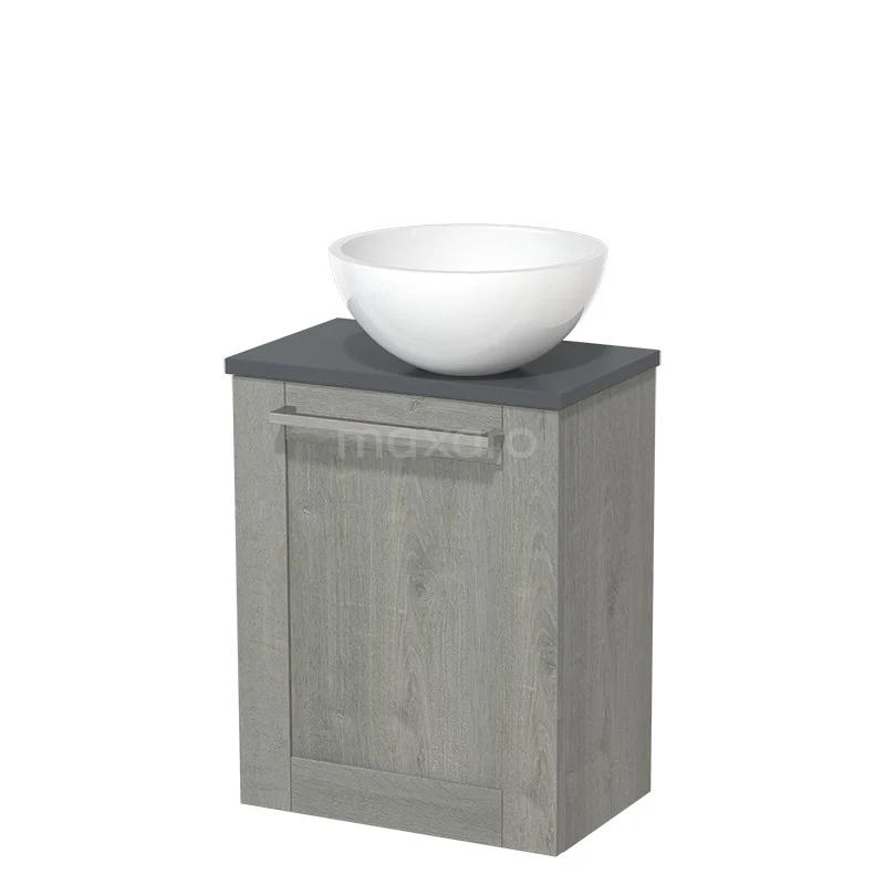 Dankzij het prachtige design is het meubel een blikvanger in de toiletruimte. De onderkast heeft een grijs eiken afwerking met een donkergrijs wastafelblad.