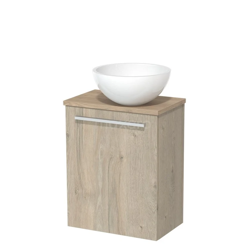 Dankzij het prachtige design is het meubel een blikvanger in de toiletruimte. De onderkast heeft een lichtgrijs eiken afwerking met een lichtbruin eiken wastafelblad.