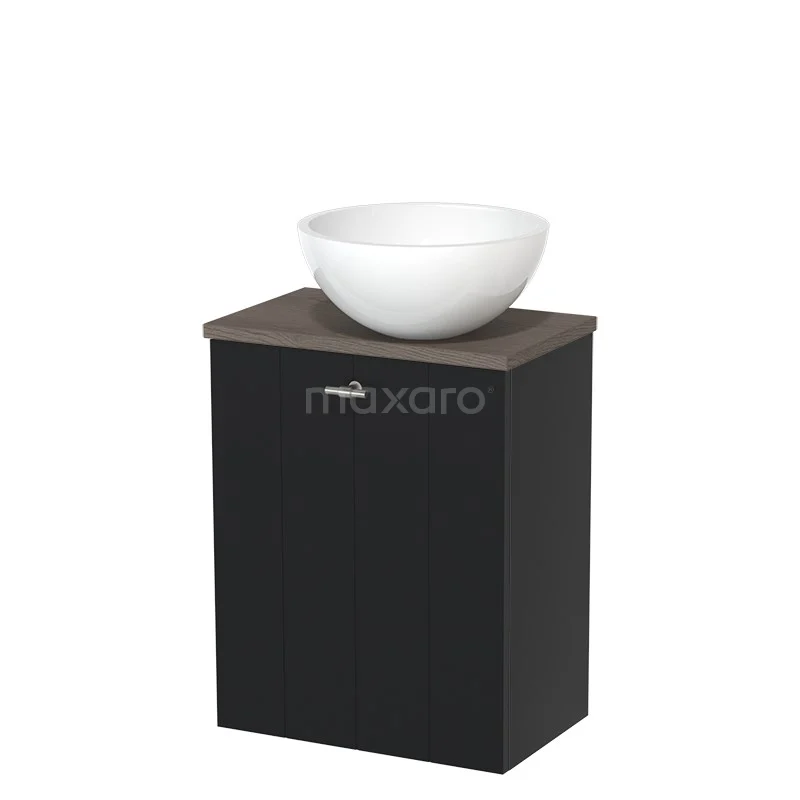 Dankzij het prachtige design is het meubel een blikvanger in de toiletruimte. De onderkast heeft een mat zwarte afwerking met een donkerbruin eiken wastafelblad.