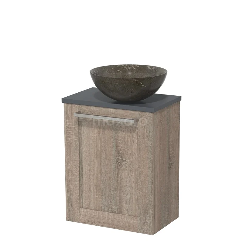 Dankzij het prachtige design is het meubel een blikvanger in de toiletruimte. De onderkast heeft een eiken afwerking met een donkergrijs wastafelblad.