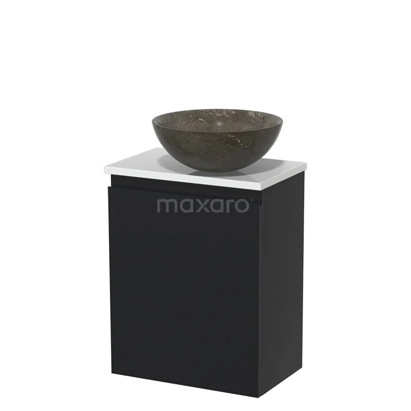 Het toiletmeubel is gecombineerd met een Novanta waskom. Deze stijlvolle waskom is gemaakt van natuursteen met een blue stone afwerking.