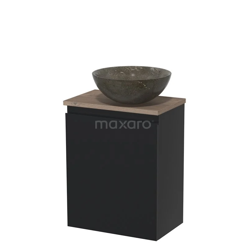 Dankzij het prachtige design is het meubel een blikvanger in de toiletruimte. De onderkast heeft een mat zwarte afwerking met een middenbruin eiken wastafelblad.