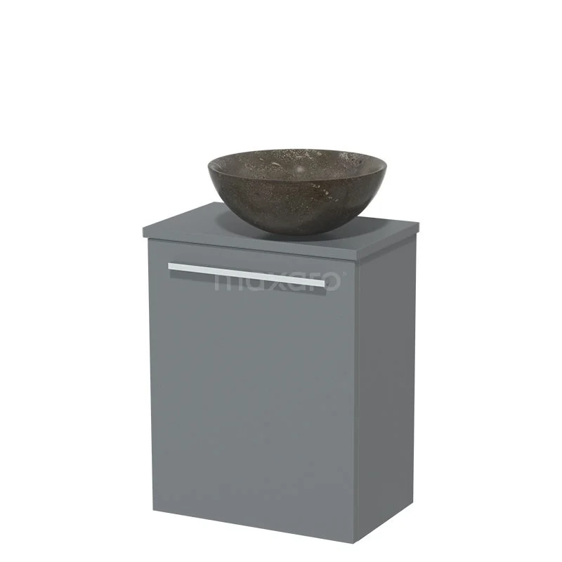 Het toiletmeubel is gecombineerd met een Novanta-waskom, die u zowel links als rechts kunt plaatsen. Dit exemplaar heeft een ronde vormgeving en is gemaakt van de steensoort Blue Stone. Hierdoor is de kom uniek en massief. Verder gaat dit natuurlijke materiaal bij goed onderhoud een leven lang mee.