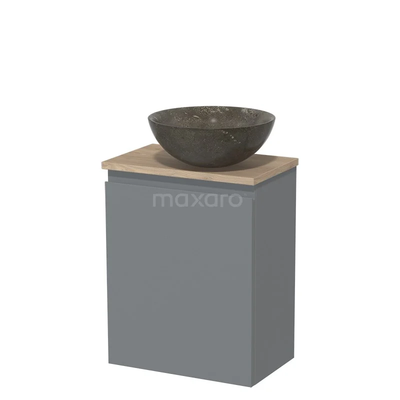 Het toiletmeubel is gecombineerd met een Novanta waskom. Deze stijlvolle waskom is gemaakt van natuursteen met een blue stone afwerking.