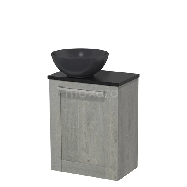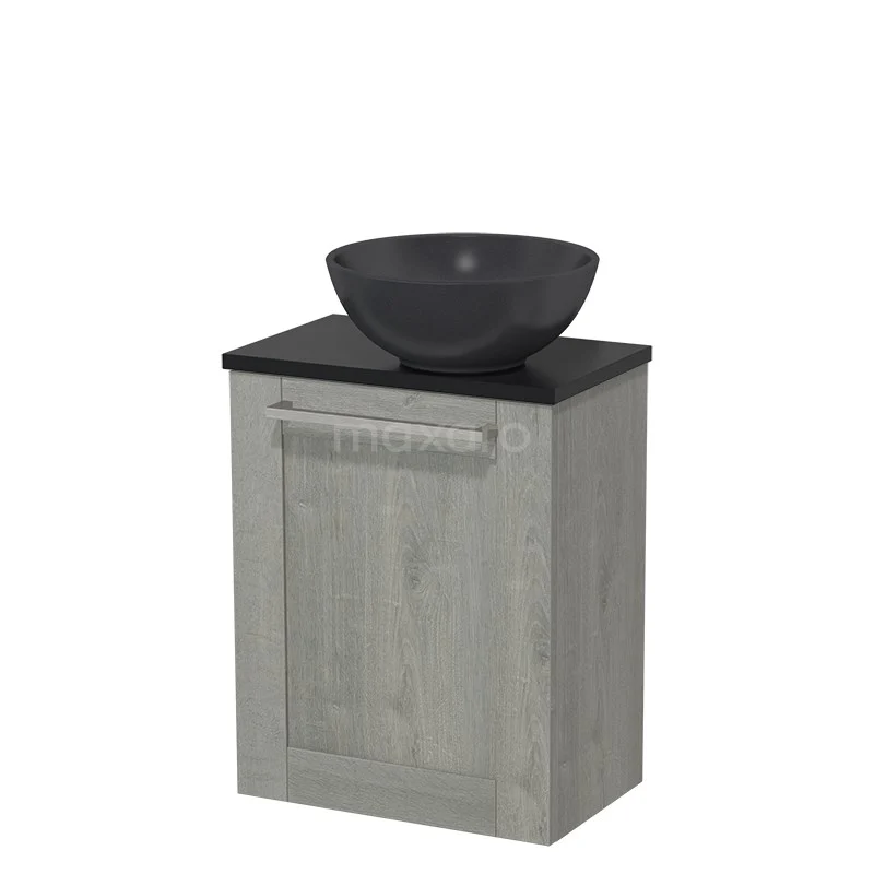 Dankzij het prachtige design is het meubel een blikvanger in de toiletruimte. De onderkast heeft een grijs eiken afwerking met een mat zwart wastafelblad.