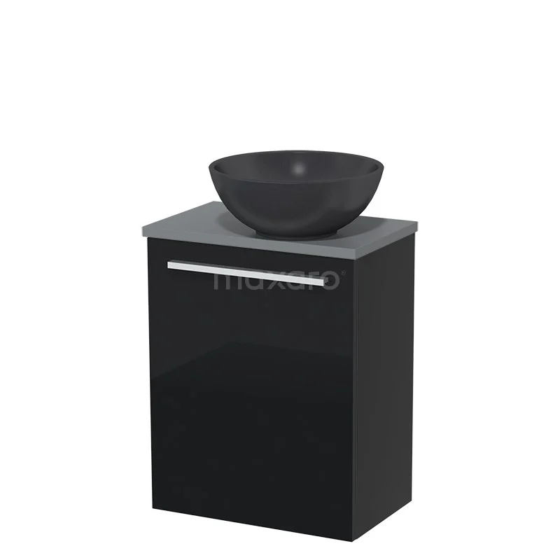 Dankzij het prachtige design is het meubel een blikvanger in de toiletruimte. De onderkast heeft een hoogglans zwarte afwerking met een middengrijs wastafelblad.