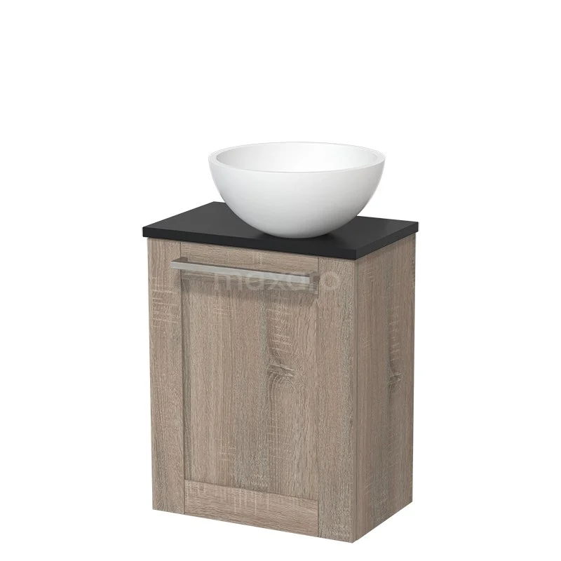 Dankzij het prachtige design is het meubel een blikvanger in de toiletruimte. De onderkast heeft een eiken afwerking met een mat zwart wastafelblad.