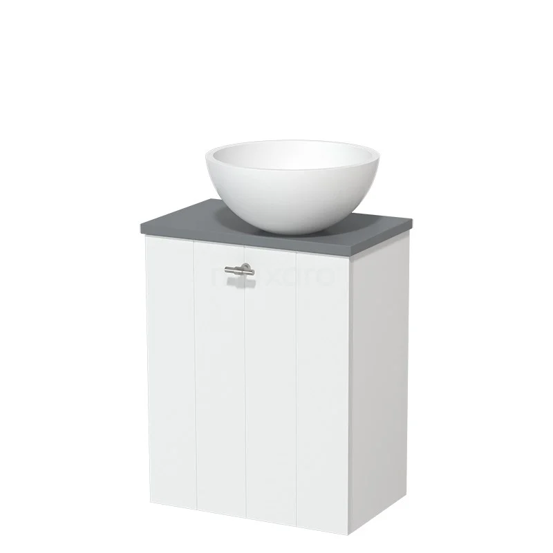 Het toiletmeubel is gecombineerd met een Mintra waskom. Deze stijlvolle waskom is gemaakt van solid surface met een mat witte afwerking.